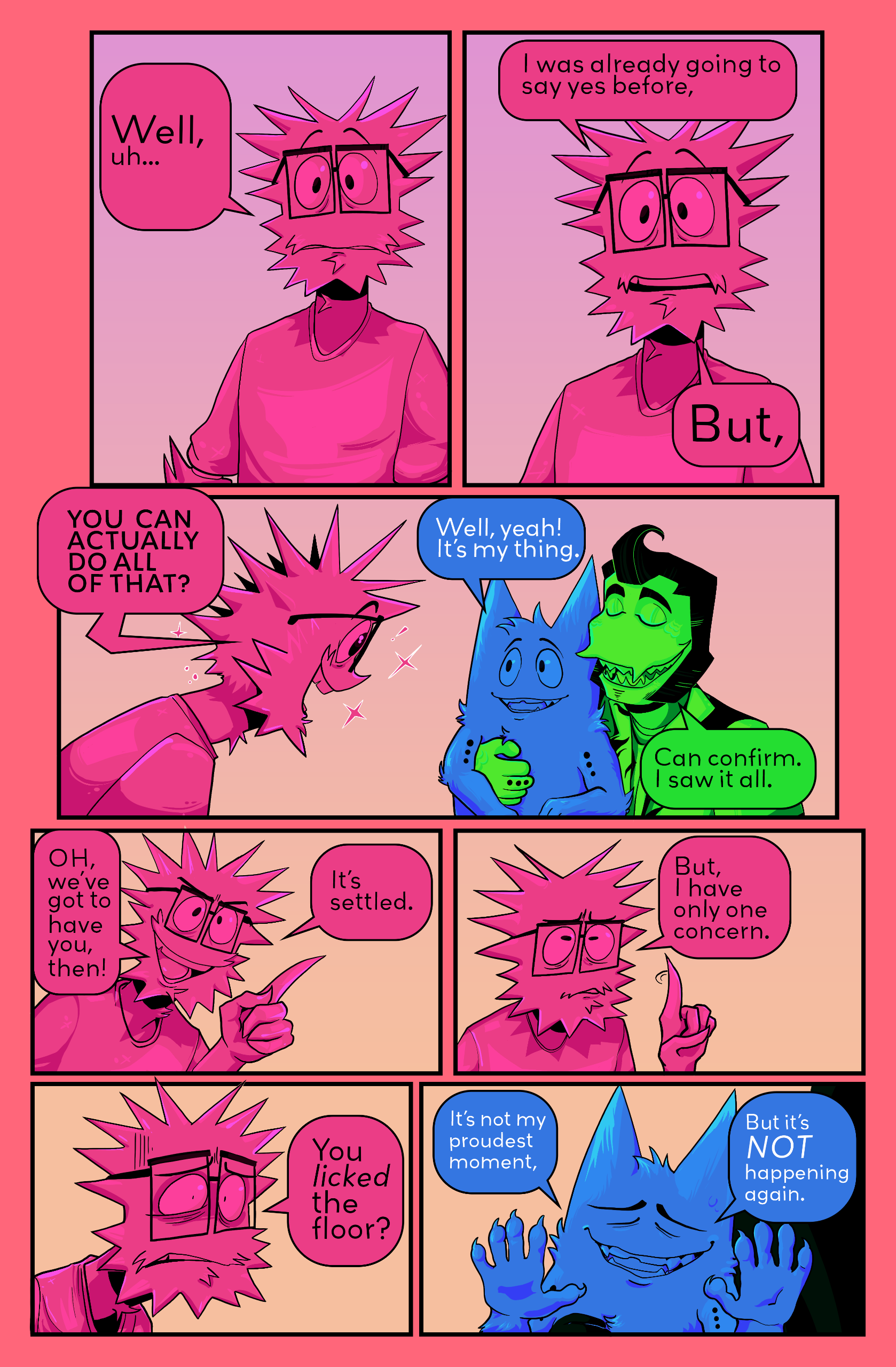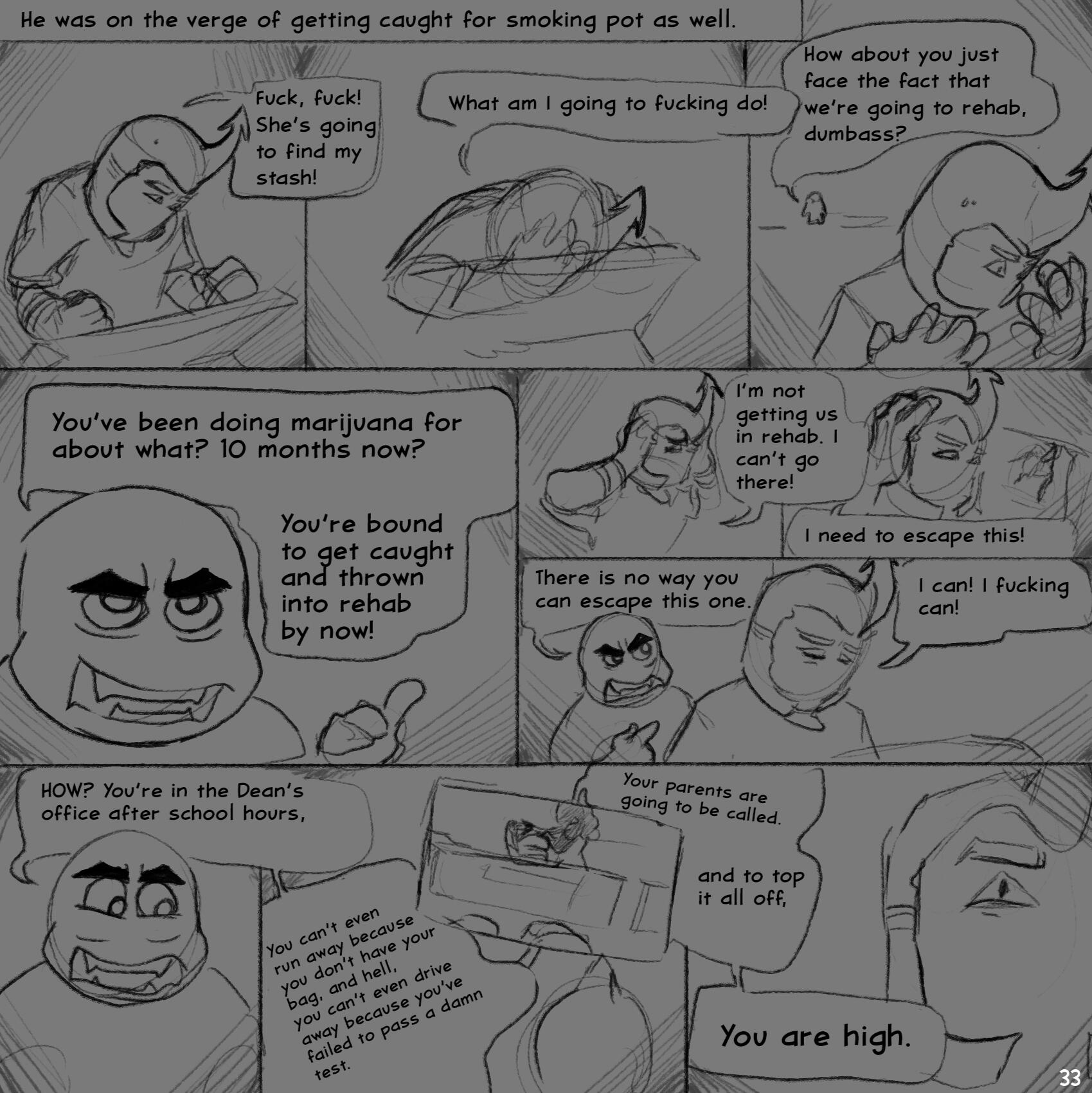 A fair warning: This comic is in a rough draft state! Pages 1-63 are less organized, and have only been revised for dialogue.